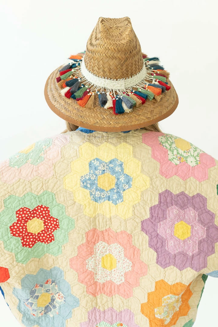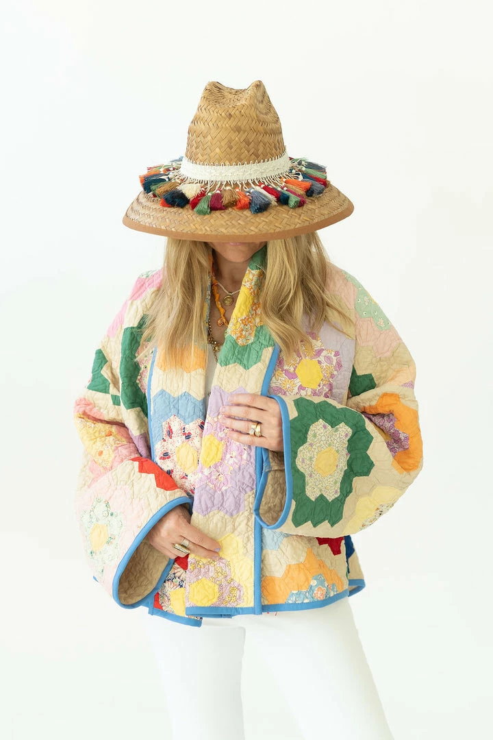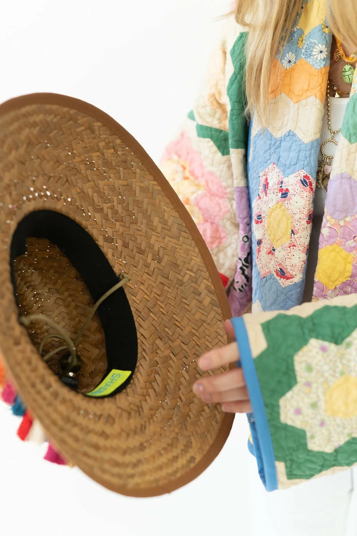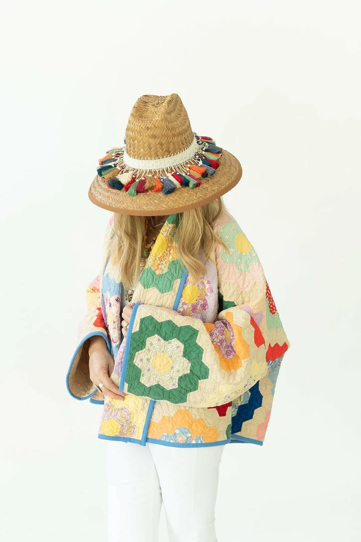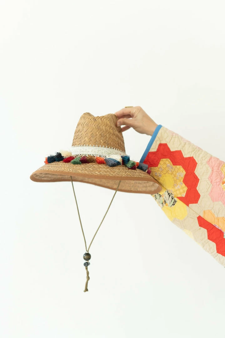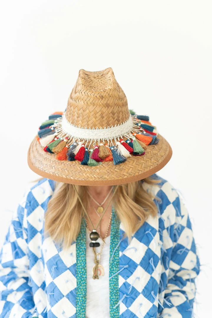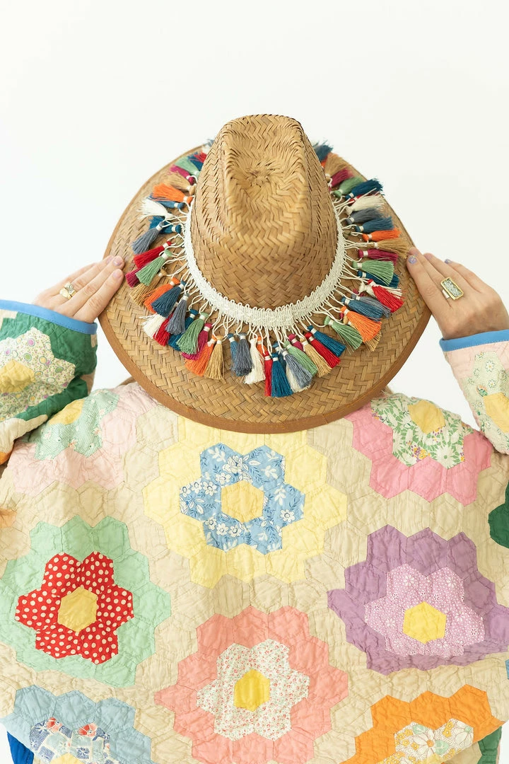 It’s no secret that we are obsessed with hats and wear them daily. When we met Crazy Lizzy, the maker of these sunhats, we went crazy for her hats and wanted to share them with you. Lady Lancaster is obsessive about a good-fitting hat and almost exclusively wears custom-fitted hats with the exception of these sunhats. Even though, these sunhats are technically one size fits most, because of the band on the inside of the hat, these hats fit like a custom hat. However, they are priced much more affordably. If you want more details or want to understand this on a deeper level, please direct message us. Crazy Lizzy uses European and vintage upholstery tassels. We love the exaggerated, oversized, whimsy, and contrast of the tassels on these straw hats. If you are looking for hats to wear at the beach, we feel like Crazy Lizzy hats check all of the boxes because there is an adjustable string for your convenience so that if you are wearing these hats while adventuring, you do not have to worry about the wind blowing them off your head. If you want to wear these hats with floral summer dresses, we feel that they translate from recreation to party very well.Â